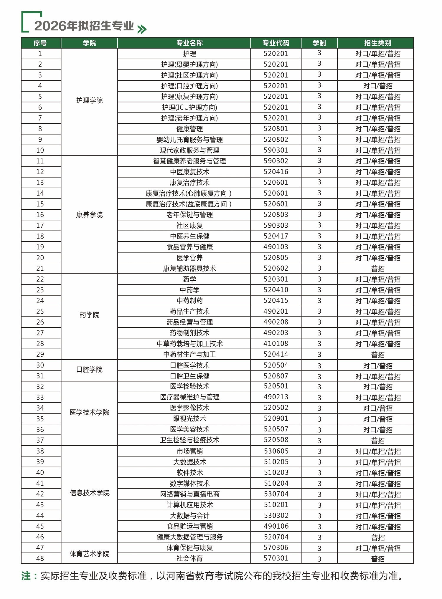 郑州医药健康职业学院2026招生简章